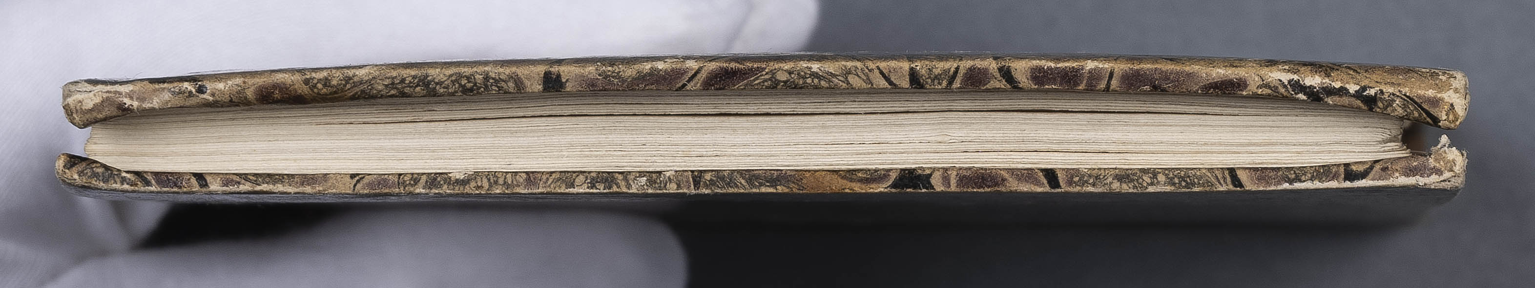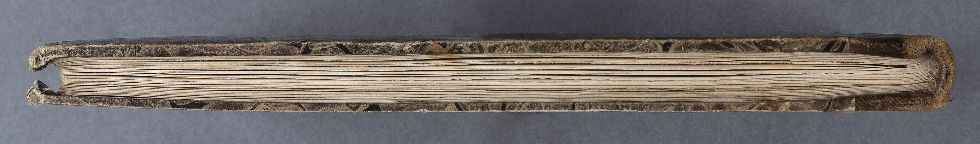 Trois palettes à motif floral ou de rinceaux poussées à froid en tête, queue et au milieu du dos (la 3e étant probablement masquée par l'étiquette de cote.)