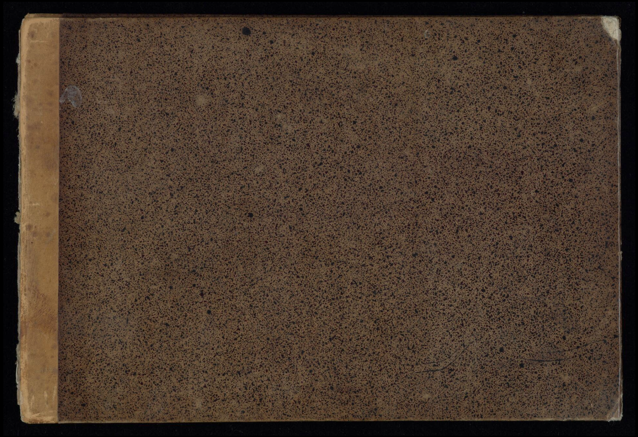 inside back cover, upside down, a printed label of the Parisian stationery store: "Mme Le Roux, / Mde Papetiere, / Rue Montmatre N° 179. / près le Boulevard. A PARIS."